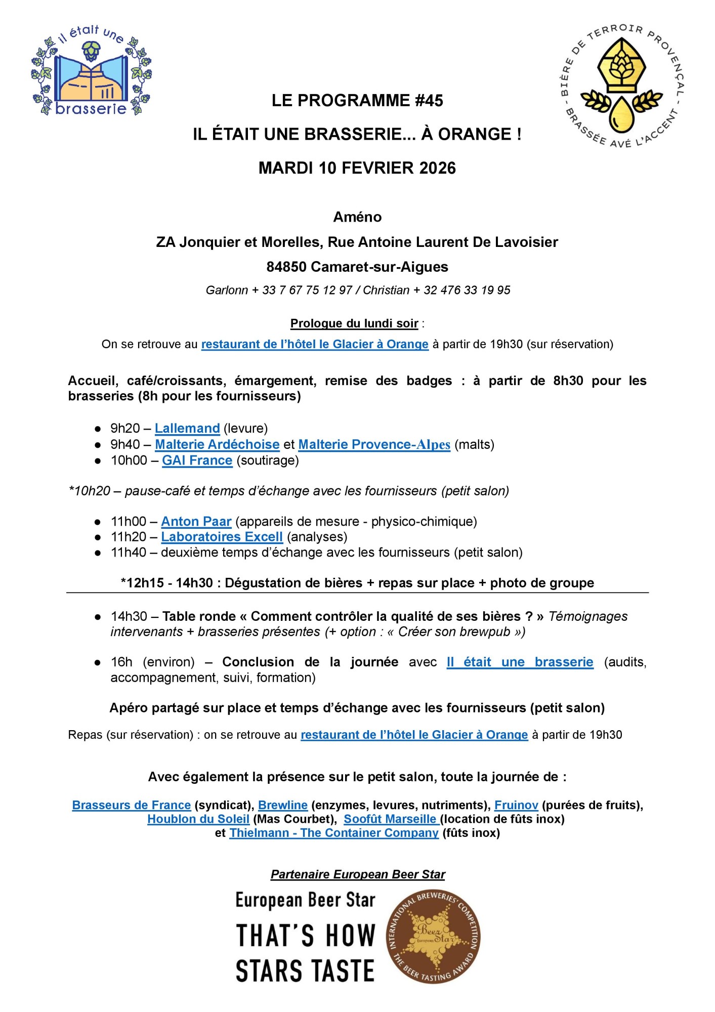 Vos noms et coordonnées seront transmis aux autres brasseries et aux intervenant·es présent·es le 5 mars 2026 sauf si vous vous y opposez. Vous recevrez également,de notre part une invitation à rejoindre le "Club Il était une brasserie", notre liste de diffusion/ newsletter. Vous pourrez ensuite choisir de vous désinscrire de cette liste si vous le souhaitez et vous ne recevrez plus rien de notre part.