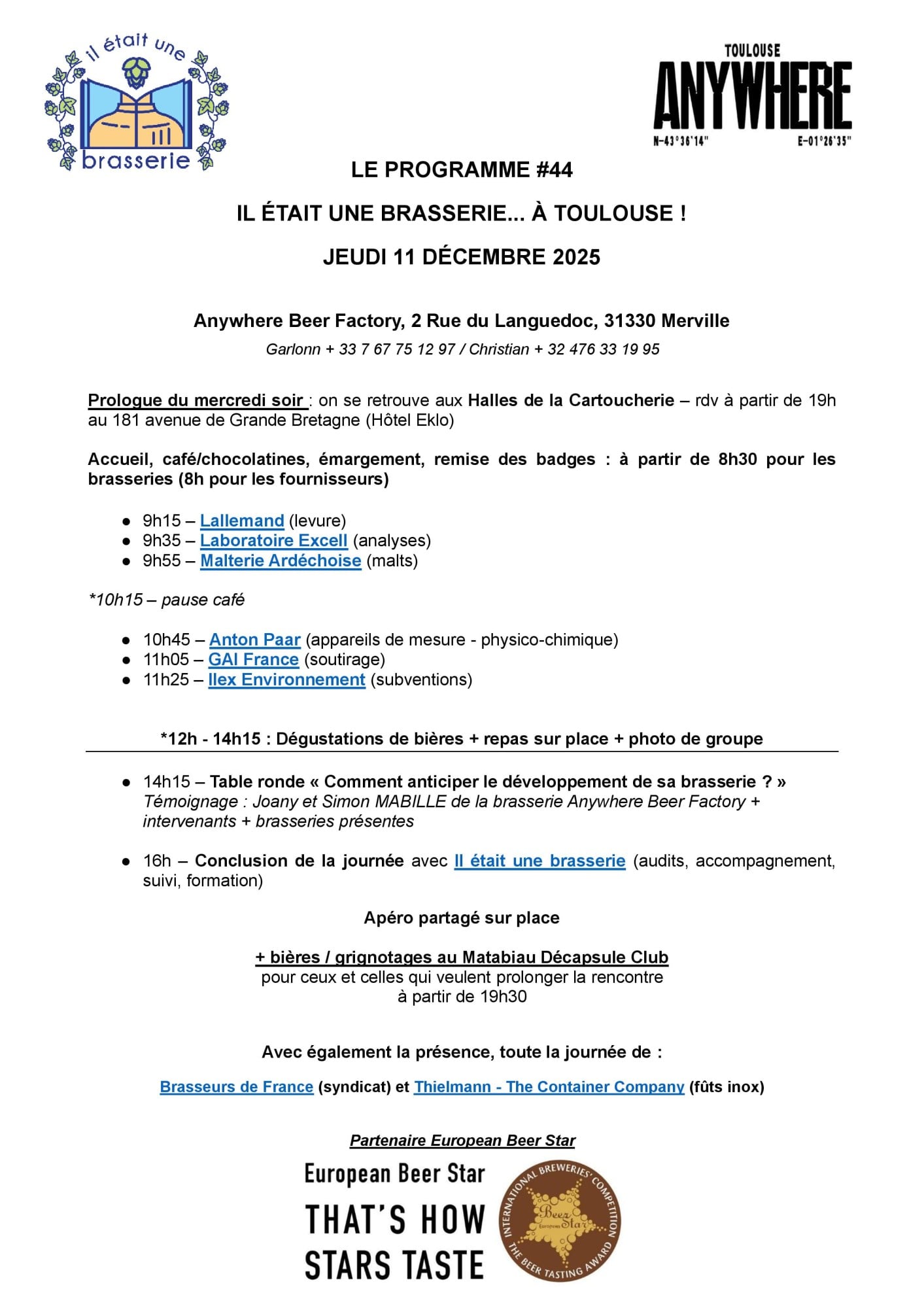 Vos noms et coordonnées seront transmis aux autres brasseries et aux intervenant·es présent·es le 2 avril 2026 sauf si vous vous y opposez. Vous recevrez également,de notre part une invitation à rejoindre le "Club Il était une brasserie", notre liste de diffusion/ newsletter. Vous pourrez ensuite choisir de vous désinscrire de cette liste si vous le souhaitez et vous ne recevrez plus rien de notre part.