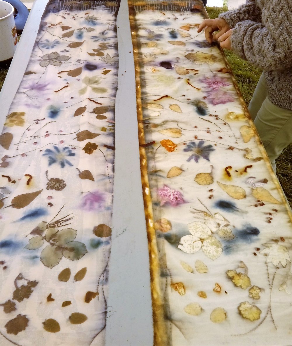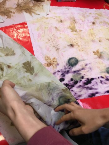 • Mise en cuisson des impressions végétales. Explications sur les teintures végétales, les techniques de teintures et d'écoprint. Pause thé pour celles et ceux qui le souhaitent.