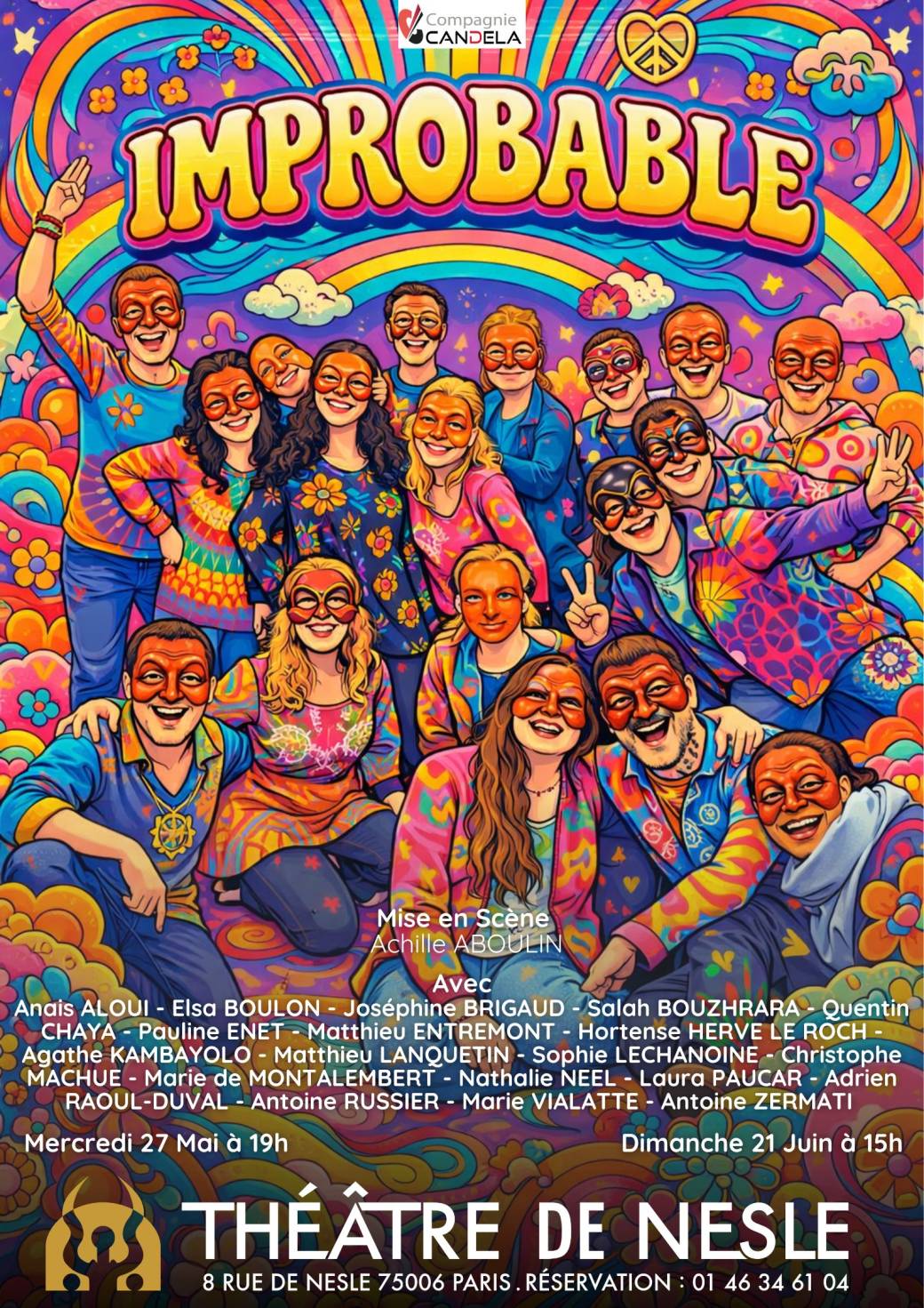 Une troupe se plie au jeu de l'impro. Avec joie et seulement un titre, des contraintes et quelques secondes de réflexion, les personnages imaginés à la voler se rencontrent et traversent d'improbables histoires.La Comédie Italienne, Rue de la Gaité, Paris, FranceCompagnie Candela