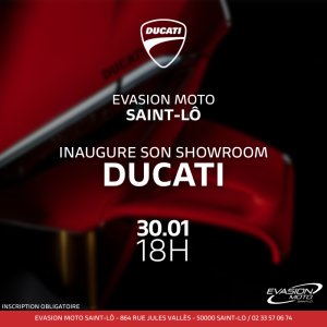 Nous avons le plaisir de vous inviter à l’inauguration du nouveau showroom Ducati chez Évasion Moto Saint-Lô,