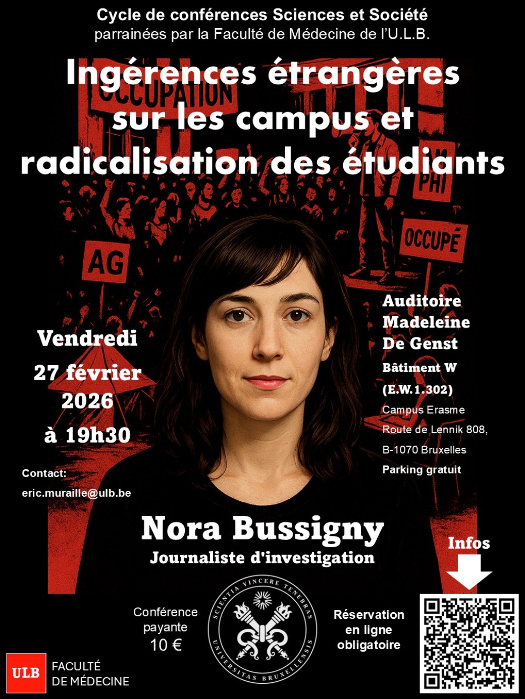 Nous avons le plaisir de vous convier à la conférence « Ingérence étrangère sur les campus et radicalisation des étudiants », avec pour oratrice principale la journaliste d’investigation française Nora Bussigny (collaboratrice de Le Point, Marianne et Franc-Tireur).