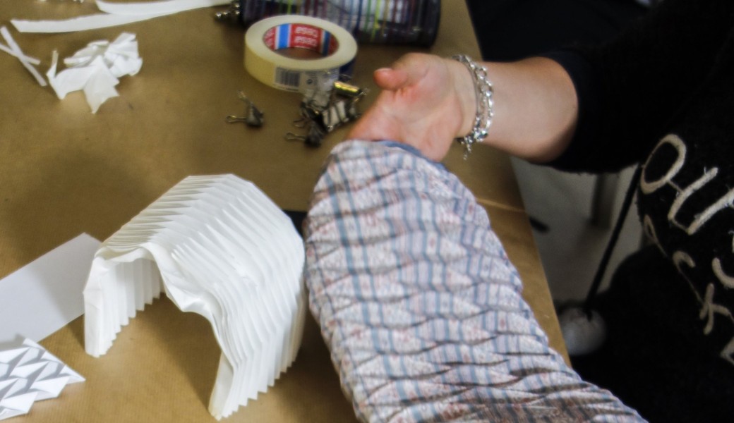 L’atelier débutera avec une introduction pour découvrir les applications insoupçonnées du pliage, ses matières et ses techniques, en particulier le plissage textile. De là, nous apprendrons à plier plusieurs motifs, d’abord en papier puis en textile : pli parallèle, Yoshimura et chevron. L’utilisation de «