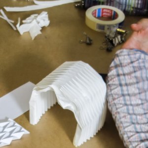 L’atelier débutera avec une introduction pour découvrir les applications insoupçonnées du pliage, ses matières et ses techniques, en particulier le plissage textile. De là, nous apprendrons à plier plusieurs motifs, d’abord en papier puis en textile : pli parallèle, Yoshimura et chevron. L’utilisation de «