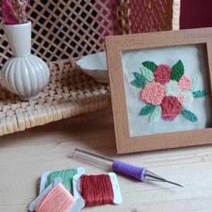 Le matériel est compris dans l'atelier (aiguille, tambour, fils). Vous repartez avec votre décoration murale.