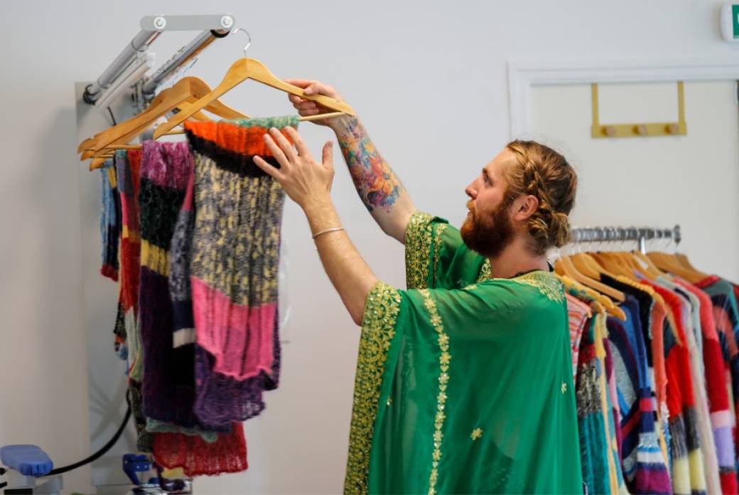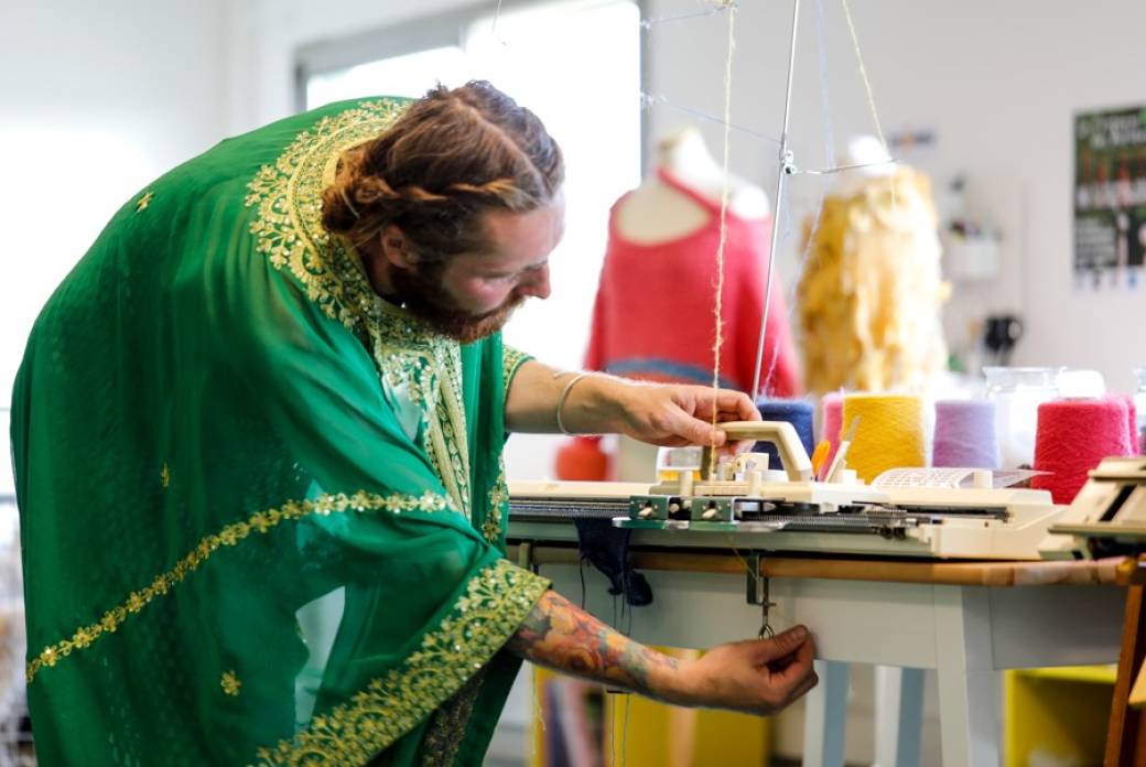 Jamie Howes, enseignant à l’IFM de Paris dans la maille, éleveur de chèvres angora, styliste pour sa marque Moirai Mohair, titulaire d’un BA Central St Martins Fashion Design with Knitwear.