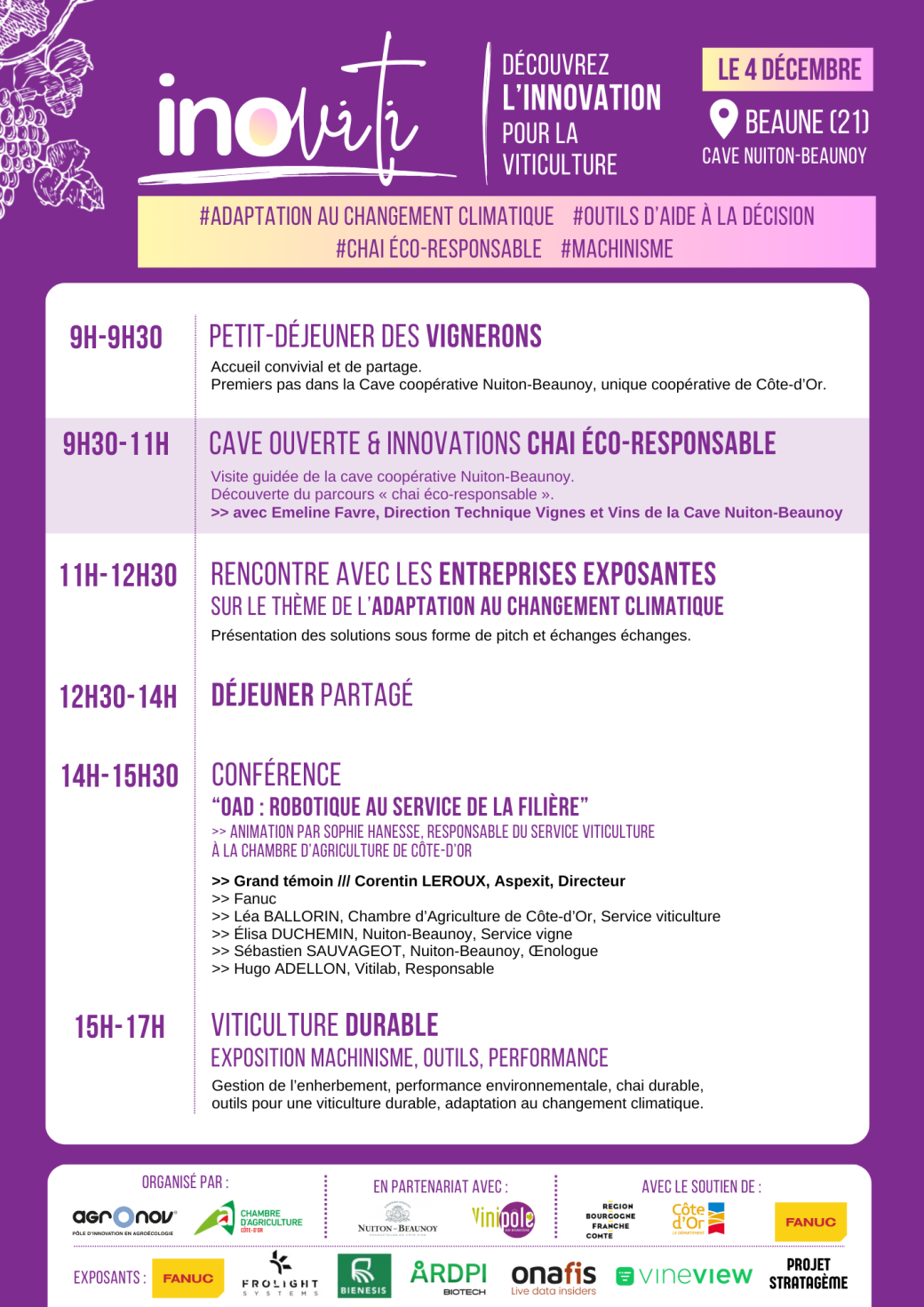 - 15h-17h : Visite terrain et parcours machinisme et viticulture durable
