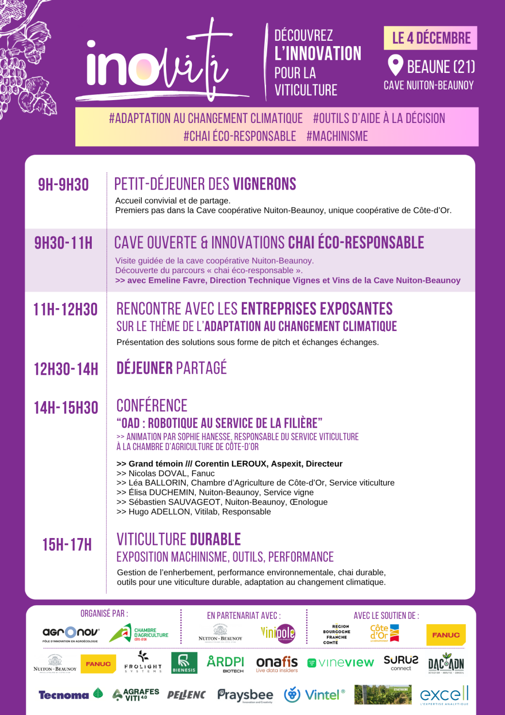 - 15h-17h : Visite terrain et parcours machinisme et viticulture durable
