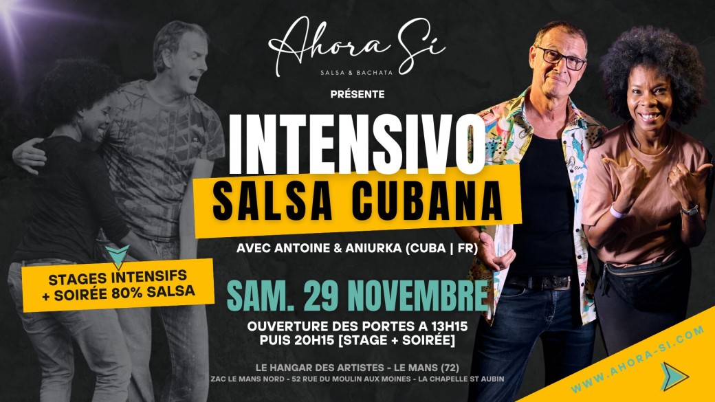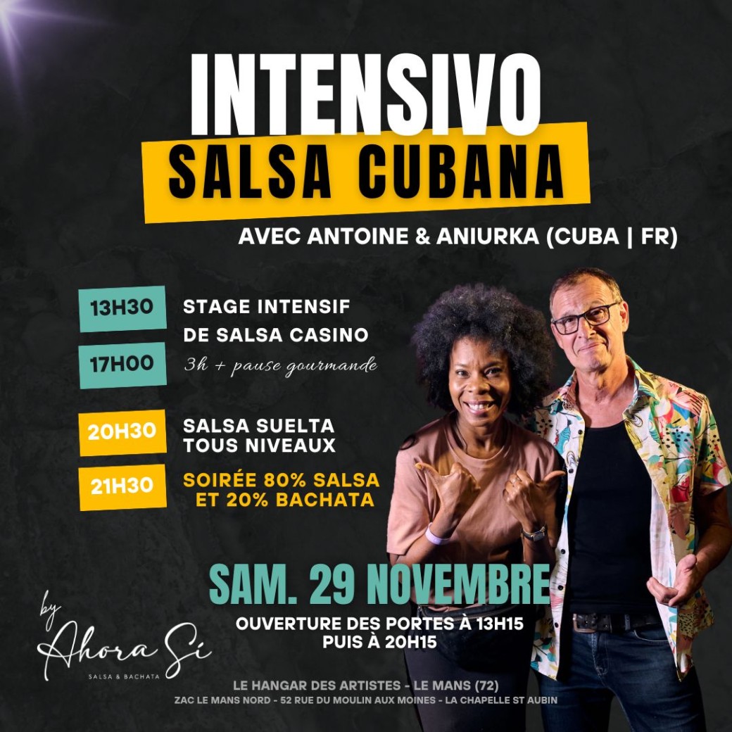 Spécialistes de la Salsa Cubaine et dotés d'une pédagogie extraordinaire, Antoine et Aniurka (Santiago de Cuba / Francia) seront avec nous le Samedi 29 Novembre prochain pour un Après-midi INTENSIF SALSA CASINO et une Soirée placée sous le signe de la fiestaaaa !