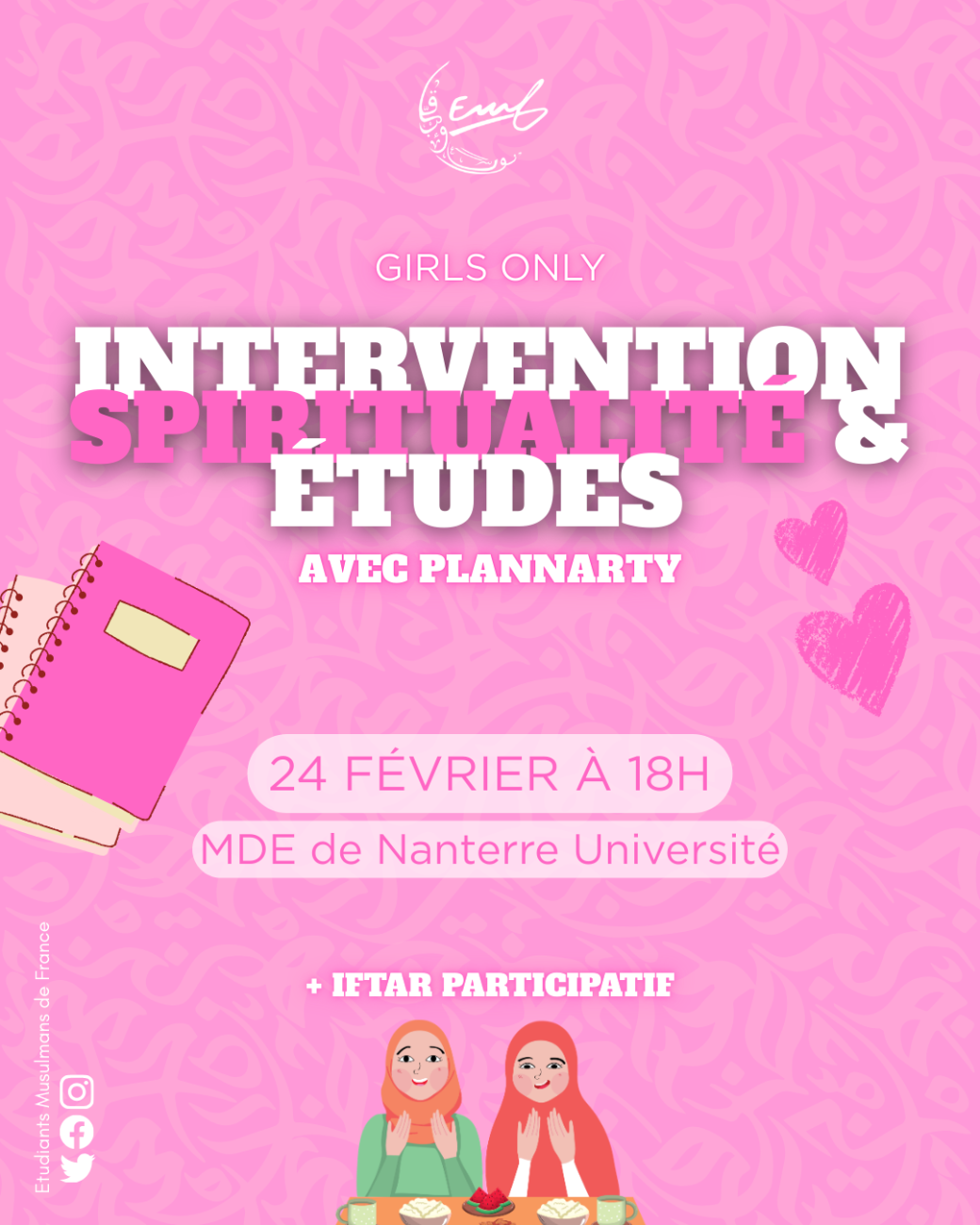 Cet espace entre femmes sera l’occasion d’apprendre à mieux structurer son quotidien, poser ses intentions, rester motivée dans ses études tout en nourrissant sa foi et son bien-être intérieur.