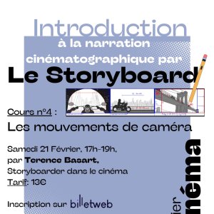 Dans ce cours, seront abordés la définition du choix de mouvement de caméra (Travelling panoramique, zoom, shake cam ...). Un petit entraînement au dessin aura lieu et un exercice sera ensuite imposé avec thème pour tester la créativité des participants.