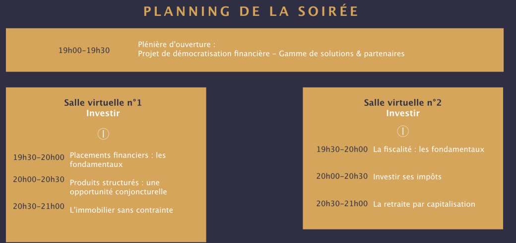 L'équipe d'organisation, composée de Conseillers et Conseillère en Gestion de Patrimoine habilités se réjouit de vous y retrouver !