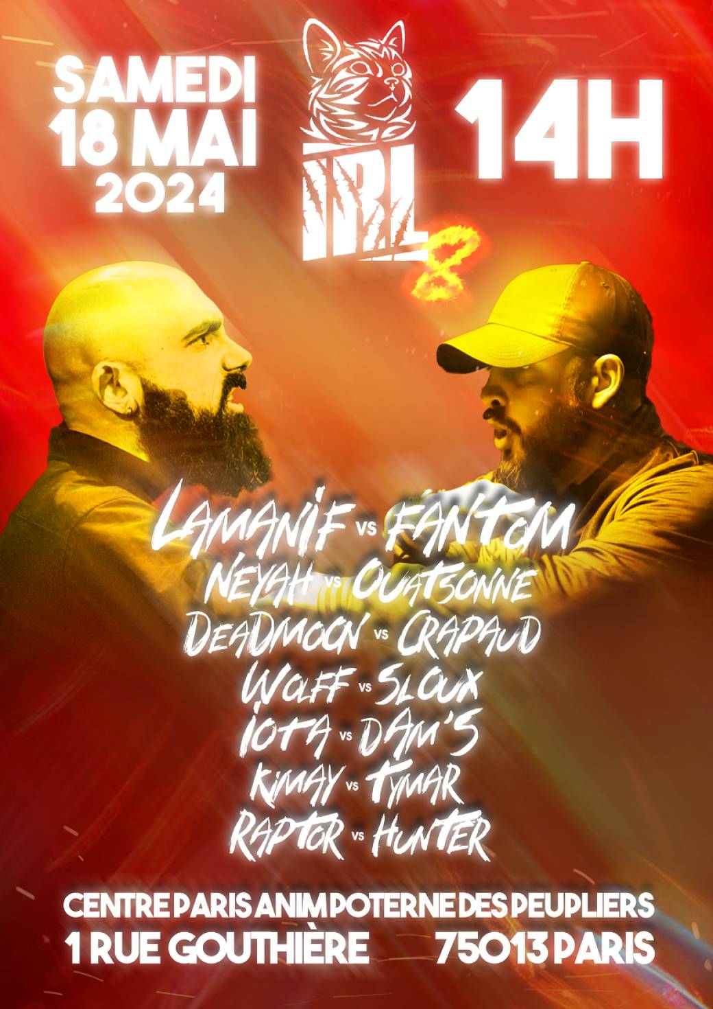Pour la 8eme édition d'IRL, on vous accueuille comme à l'accoutumé au Centre Paris Anim' Poterne des Peupliers, dans le 13eme arrondissement.