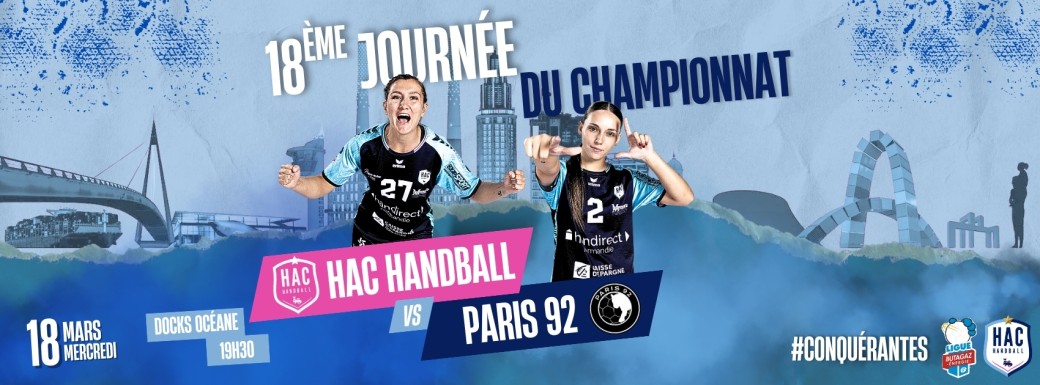 2026-03-18 19:30:002026-03-18 21:30:00Europe/ParisJ18 LIGUE BUTAGAZ ENERGIE LE HAC HANDBALL REÇOIT PARIS 92Reservations on : https://www.billetweb.fr/j18-ligue-butagaz-energie-le-hac-handball-re-oit-paris-92