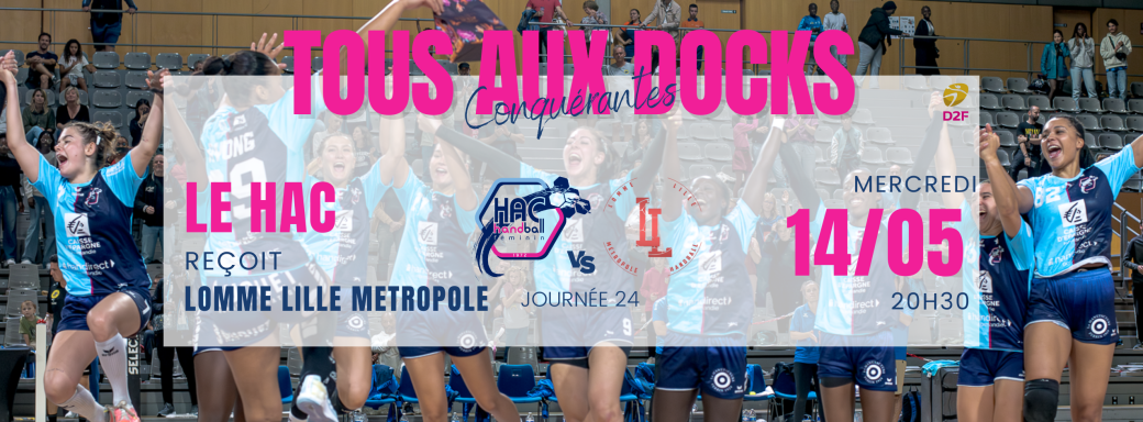 2025-05-14 20:30:002025-05-14 22:00:00Europe/ParisJ24 D2F LE HAC HANDBALL REÇOIT LOMME LILLE METROPOLE HANDBALLReservations on : https://www.billetweb.fr/j24-d2f-le-hac-handball-re-oit-lomme-lille-metropole-handball