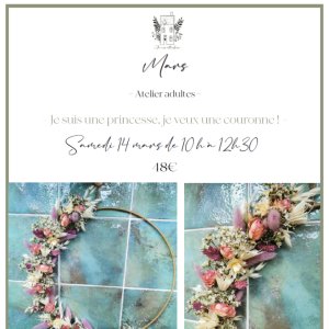 2026-03-14 10:00:002026-03-14 12:30:00Europe/ParisJe suis une princesse, je veux une couronne murale !Reservations on : https://www.billetweb.fr/je-suis-une-princesse-je-veux-une-couronne-murale