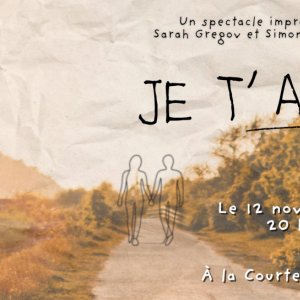 "Je t'aime" est un spectacle improvisé qui vous propose une rencontre, celle de deux personnages qui émergent sur scène et qui se rencontrent par ces hasards de la vie qui ne s'expliquent pas. Leurs coeurs se parleront, et vous assisterez à leur histoire, leurs doutes, leurs moments d'euphorie, et peut-être leur rupture. Ce moment où l'Amour s'en va comme il est venu. Ou peut-être pas.