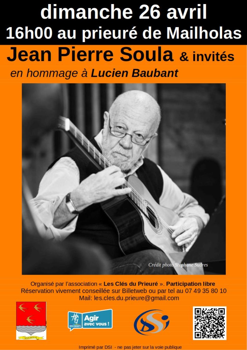 2026-04-26 16:00:00 2026-04-26 17:00:00 Europe/Paris Jean-Pierre Soula et invités Reservations on : https://www.billetweb.fr/jean-pierre-soula-et-invites -- Lucien Baubant et son ami et élève Jean-Pierre Soula devaient donner un concert le 26 avril à la chapelle de Mailholas. Lucien nous a malheureusement quittés récemment mais, pour lui rendre hommage, Jean-Pierre propose une partie du programme prévu avec Lucien. Accompagnés de sa fidèle guitare, ses chants nous feront voyager entre l’Amérique et la péninsule ibérique. D'autres musiciens qui connaissaient Lucien seront présents lors de cette soirée spéciale.    Crédit photo : Stéphane Sudres  Prieuré Saint-Pierre de Birac, 31310 Mailholas Association les clés du prieuré