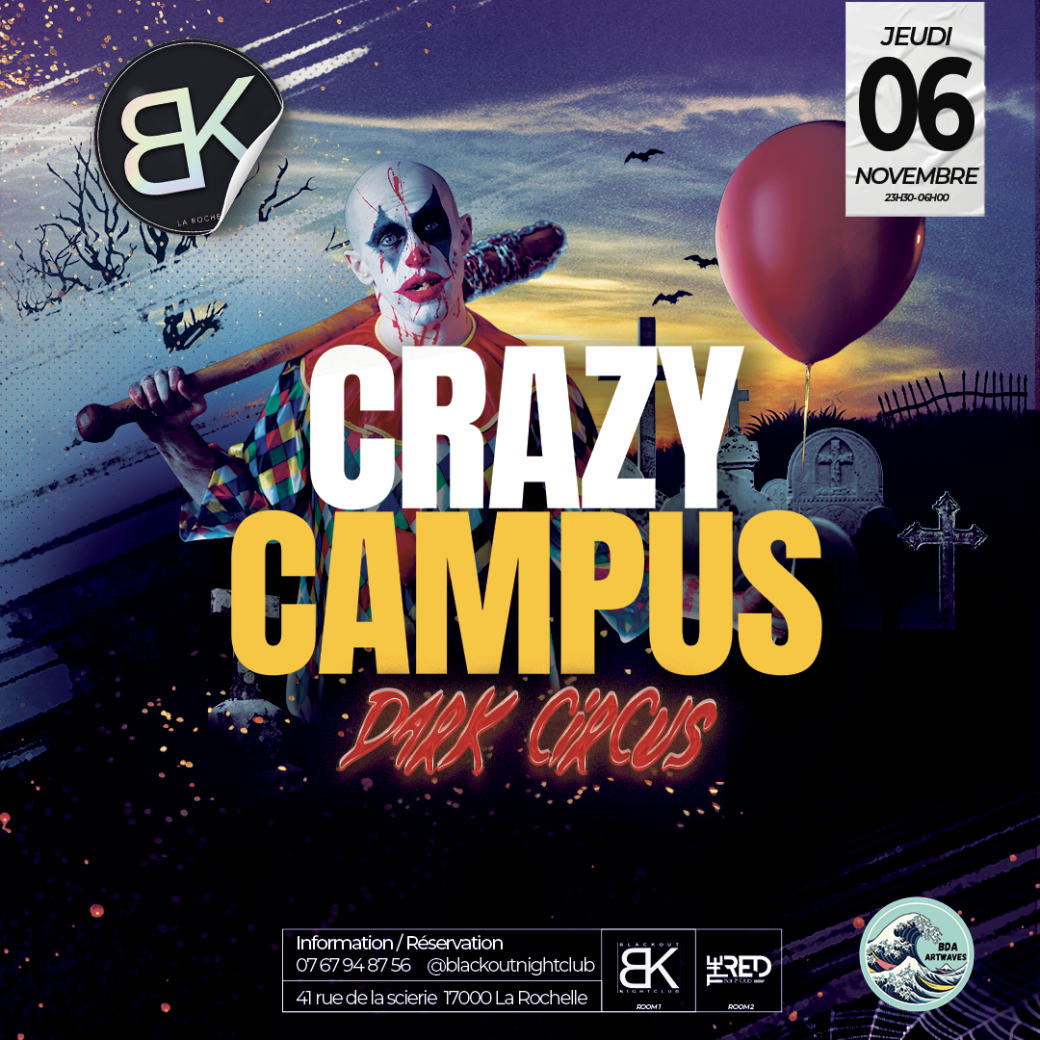 2025-11-06 23:30:002025-11-07 06:00:00Europe/ParisJeudi 06 Novembre - Crazy Campus : Dark Circus (avec le BDA ARTWAVES)Reservations on : https://www.billetweb.fr/jeudi-06-novembre-crazy-campus-dark-circus-avec-le-bda-artwaves