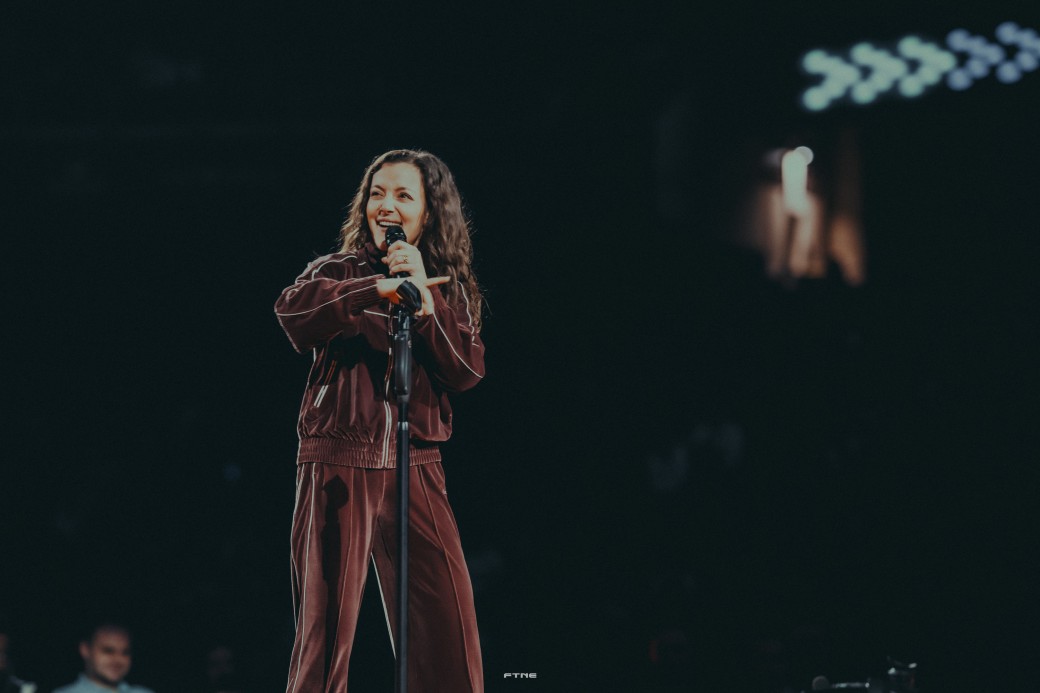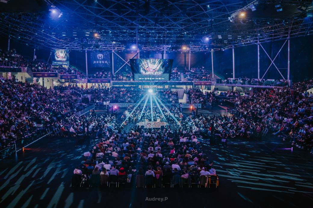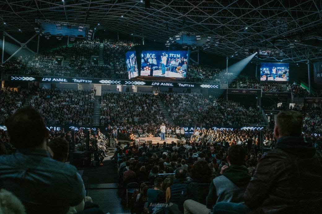On transforme le terrain de handball de la H Arena en véritable arène du stand-up, avec une scène centrale et une configuration immersive à 360°.