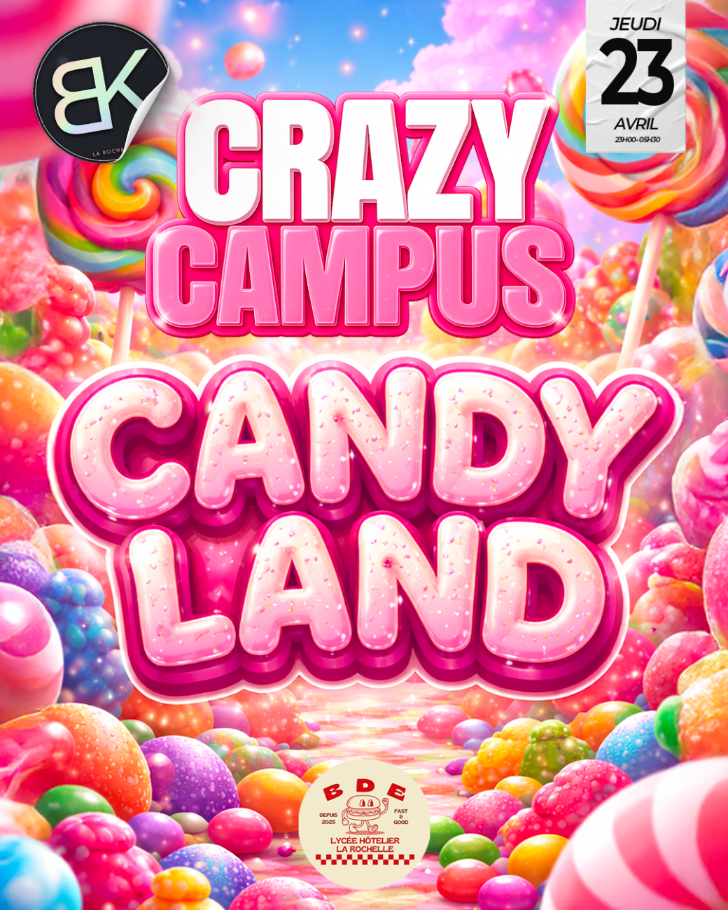 2026-04-23 23:00:002026-04-24 06:00:00Europe/ParisJeudi 23 avril - Crazy Campus : Candy LandReservations on : https://www.billetweb.fr/jeudi-16-avril-crazy-campus-student-night1