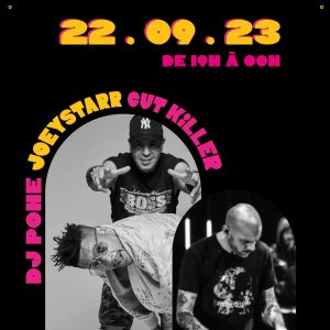 2023-09-22 19:00:002023-09-22 23:30:00Europe/ParisJOEYSTARR - CUT KILLER - DJ PONEReservations on : https://www.billetweb.fr/joeyy-star-cut-killer