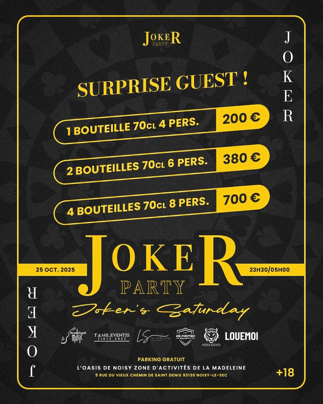 For VIP TABLE reservations, please contact Joker at +33 6 15 96 40 00