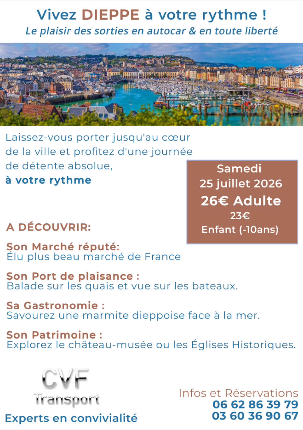 Reservations on : https://www.billetweb.fr/journee-a-dieppe-en-toute-liberte --