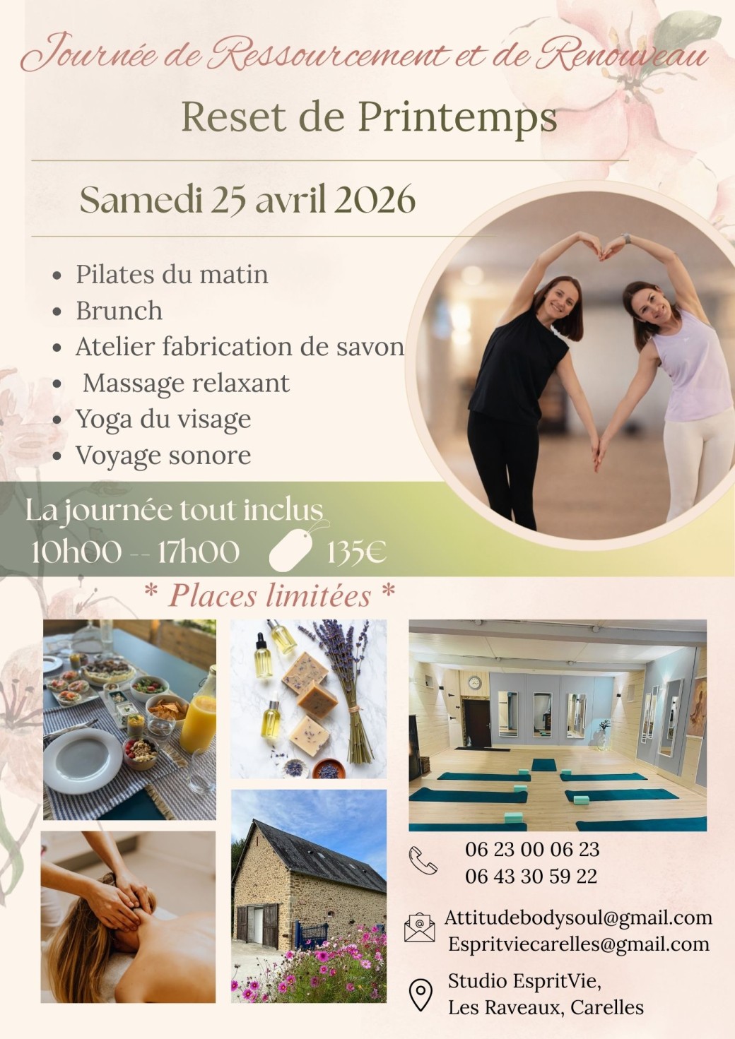 Offrez-vous une parenthèse de douceur pour accueillir le printemps et vous reconnecter à vous-même. Une journée dédiée au renouveau, à l’équilibre et à l’harmonie du corps et de l’esprit.