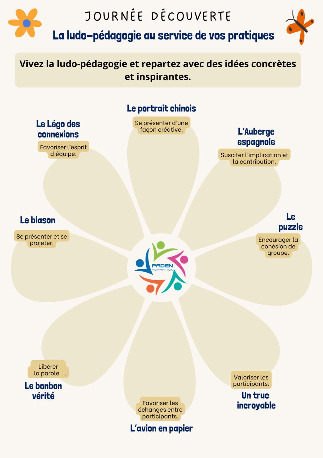 Cette journée “Journée découverte — La ludo-pédagogie au service de vos pratiques” vous propose de découvrir, tester et vivre des d’activités ludo-pédagogiques que vous pourrez ensuite réutiliser dans vos formations, ateliers, réunions, accompagnements ou animations d’équipe.