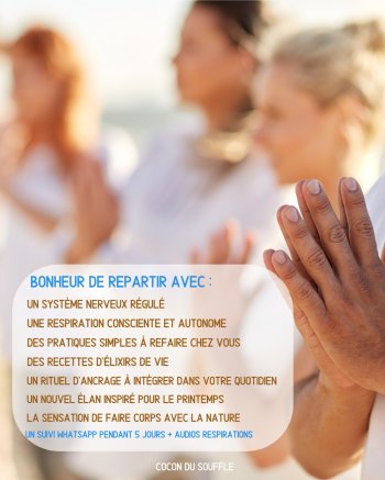 Entre océan et forêt, nous explorerons différentes pratiques de souffle, de marche et de connexion à la nature, pour apaiser le système nerveux, réveiller l’énergie et ouvrir l’espace intérieur.