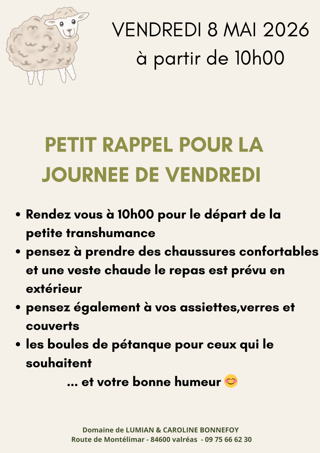 - Petite transhumance (départ 10h00)