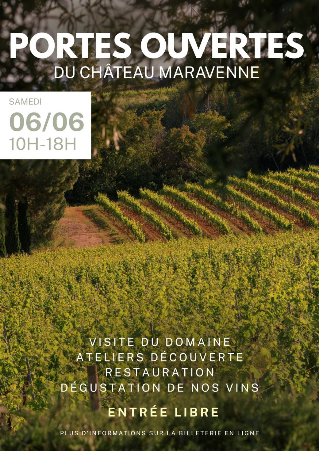 Nous avons le plaisir de vous accueillir le Samedi 6 Juin de 10h à 18h au Château Maravenne pour une journée conviviale au cœur du domaine, placée sous le signe de la découverte et du partage.