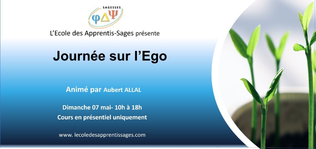 2023-05-07 10:00:00 2023-05-07 18:00:00 Europe/Paris Journée sur l'Ego Reservations on : https://www.billetweb.fr/journee-sur-lego -- Intervenant: Aubert ALLAL : Psychologue, co-fondateur de l’École des Apprentis-Sages et de L’Institut de Dynamique Émotionnelle. Auteur de 2 livres sur la loi de karma.   L’EGO : est-il l’axe de l’estime de soi ou l’ennemi à abattre ? Quelles sont les différences entre l’égo, le moi ou le Soi ? De quoi parle-t-on ? Faut-il combattre son ego, le soumettre, le détruire ou faire, comme le propose Etienne Jalenques, de l’assassin un garde du corps ? L’Ego n’est-il pas fondamentalement un angle mort ? Et quand il s’agit d’essayer de le soumettre à la volonté de ce qui en nous, est- il plus grand que nous, qui parle ? Est-ce que l’ego ne se rit pas de nous ? Ne met-il pas en scène sa propre mise en abîme ? Est-il l’axe et le fondement de l’amour de soi, comment ne pas risquer de se jeter hors de sa propre demeure en essayant de le rejeter ? En présentiel L'Ecole des Apprentis-Sages