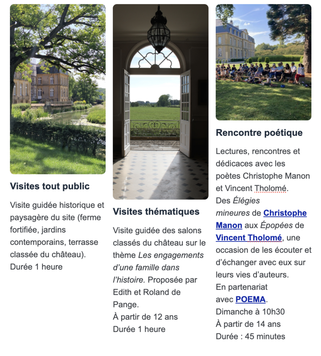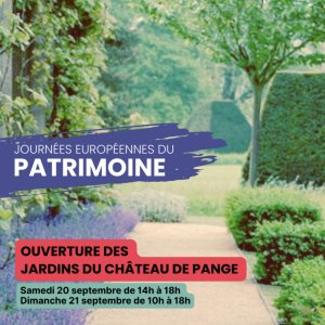 Cette année, pour le week-end des Journées Européennes du Patrimoine, les jardins du château de Pange sont ouverts : venez découvrir ou redécouvrir le parc du château de Pange ainsi que ses jardins contemporains dessinés par l’architecte paysagiste Louis Bénech.