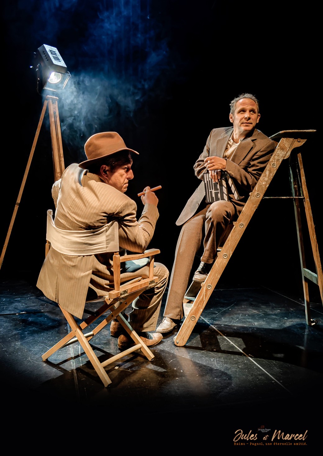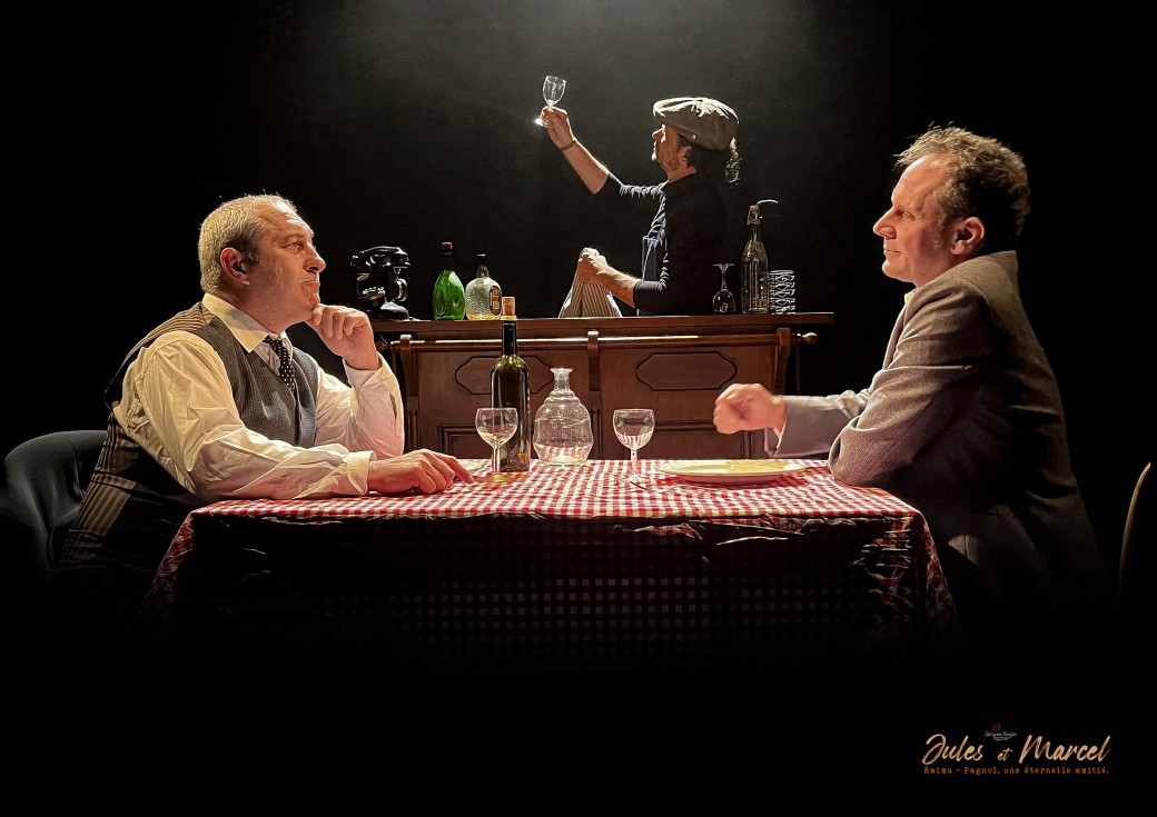 Avec une mise en scène imaginative, contemporaine et rythmée, nous passerons dans tous ces lieux où leur vie s’est jouée : sur scène bien sûr, mais surtout dans les loges, les bureaux, les restaurants, les bars, la rue... C’est en 1h30 l’évocation d’une complicité intime et professionnelle, donnant vie à tous ces moments aussi intenses que discrets mais qui grâce à leurs correspondances sont arrivés jusqu’à nous avec leurs vrais mots, leurs véritables expressions, leurs coups de gueule authentiques et leurs déclarations d’amour et de respects aussi sincères qu’éternels. Nous découvrons très concrètement l’intelligence et la malice de Marcel Pagnol, la franchise et le bon sens de Jules Raimu ; et ce troisième personnage de « Jean » qui nous en fera vivre tant d’autres : directeurs de théâtres, restaurateurs, accessoiristes, musiciens...