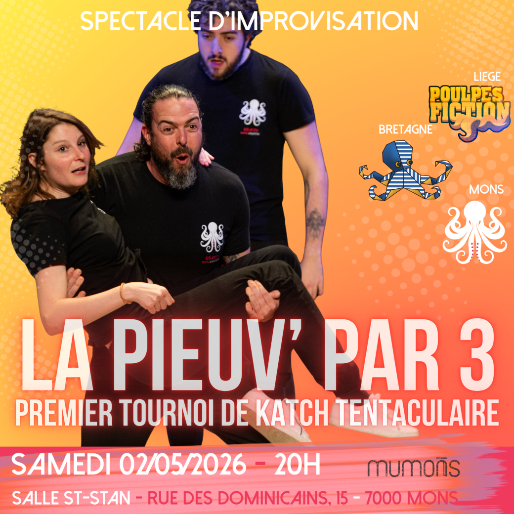 Vous voulez une pieuvre ? Ce vendredi 1er mai on accueille nos cousins Liégeois (les Poulpes Fictions) et Bretons (les Octopus Impro) pour une soirée à l'énergie folle, de rires et d'émotions !