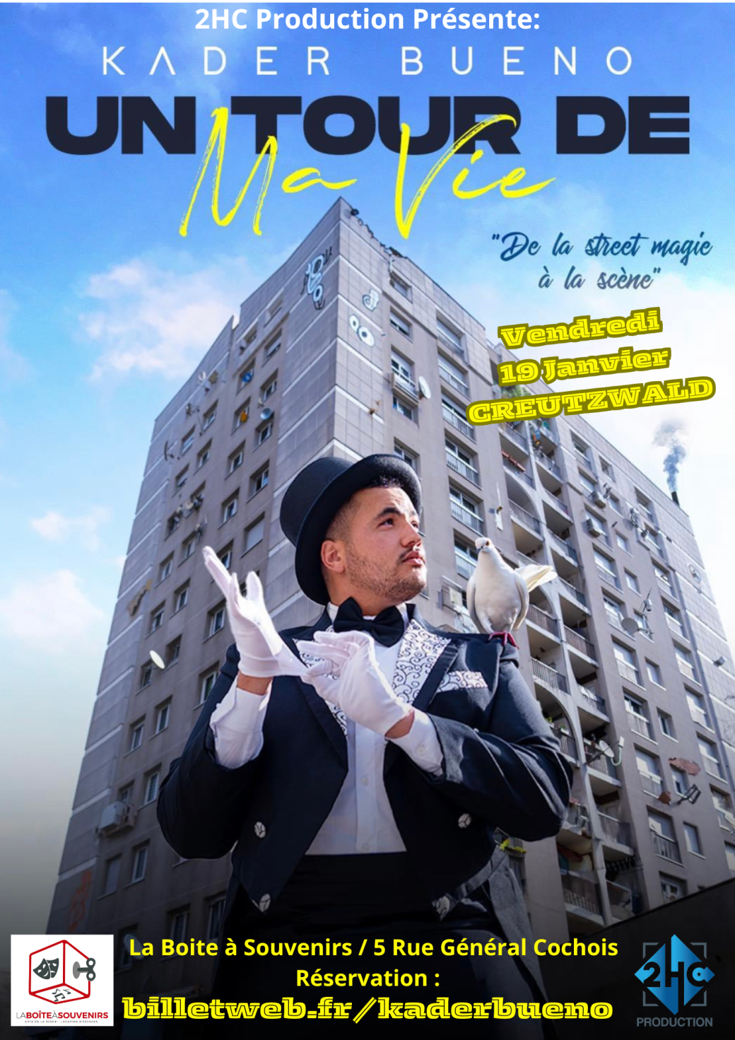 Kader, l'archimage moderne, vous emmène dans un périple captivant à travers sa vie, où chaque moment est une manifestation de Magie. Avec une fusion envoûtante de close-up, d'illusions grandioses, et de stand-up hilarant, le spectacle de Kader est un voyage qui vous transportera, vous émerveillera, vous surprendra, et surtout, vous fera rire aux éclats.