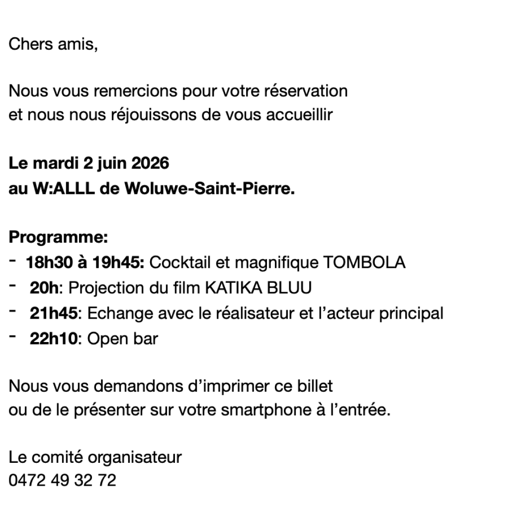 Projection d'un film réalisé à Goma, RDCongo. au profit de l'asbl En Avant Les Enfants qui soutient les femmes et les enfants de Goma, acteurs de changement et de paix.