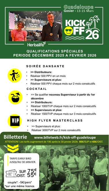 (Gratuit pour les Clients privilégiés sur présentation du Pass Gratuit avec N°ID Herbalife obligatoire )