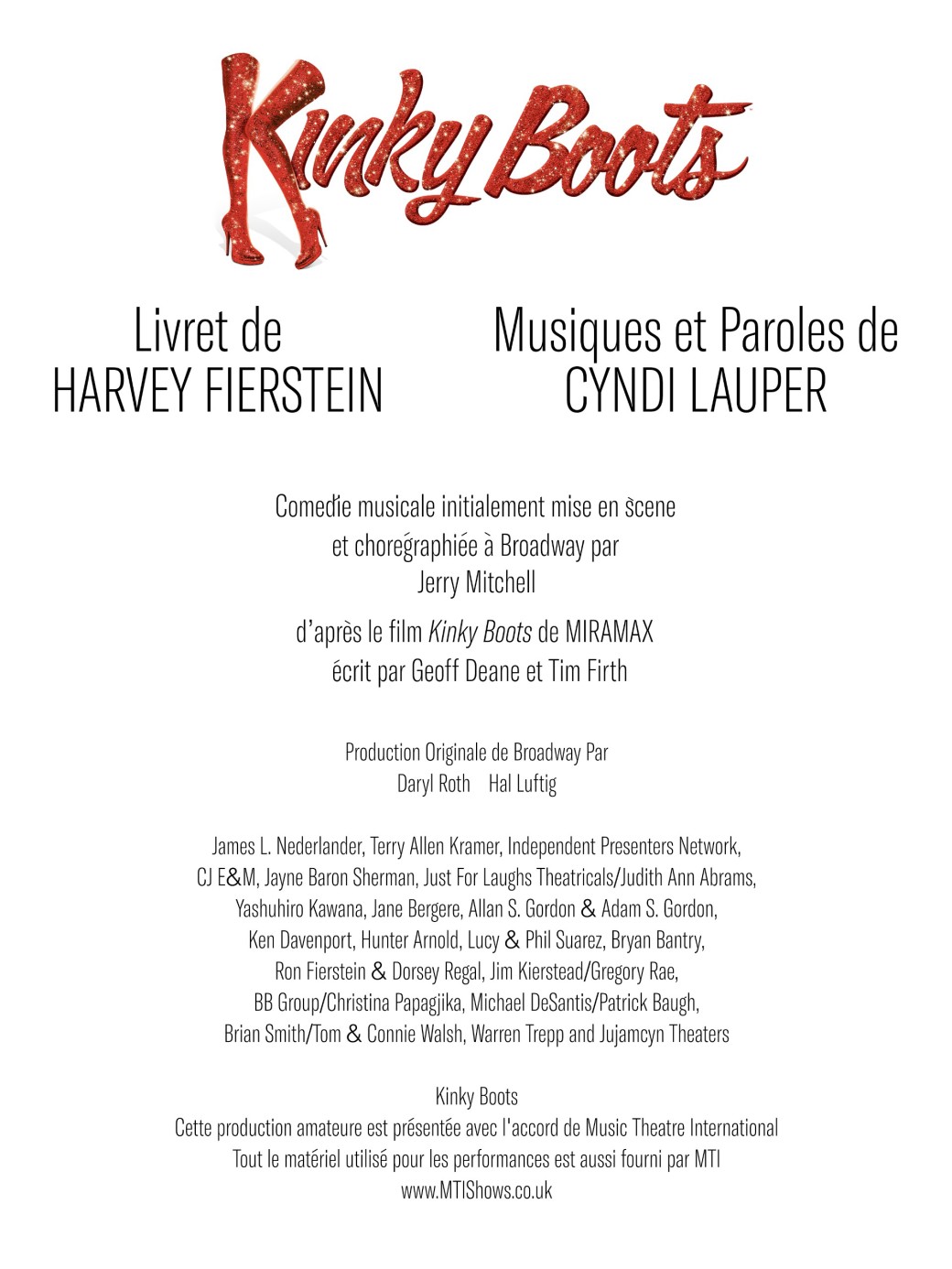 Inspiré d’une histoire vraie, Kinky Boots raconte la rencontre improbable entre Charlie, jeune héritier d’une usine de chaussures au bord de la faillite, et Lola, artiste drag queen pleine d’assurance. Tout semble les opposer… et pourtant. En unissant leurs forces pour sauver l’usine et en fabriquant des bottes destinées à un public hors normes, ils découvrent qu’ils ne sont finalement pas si différents.