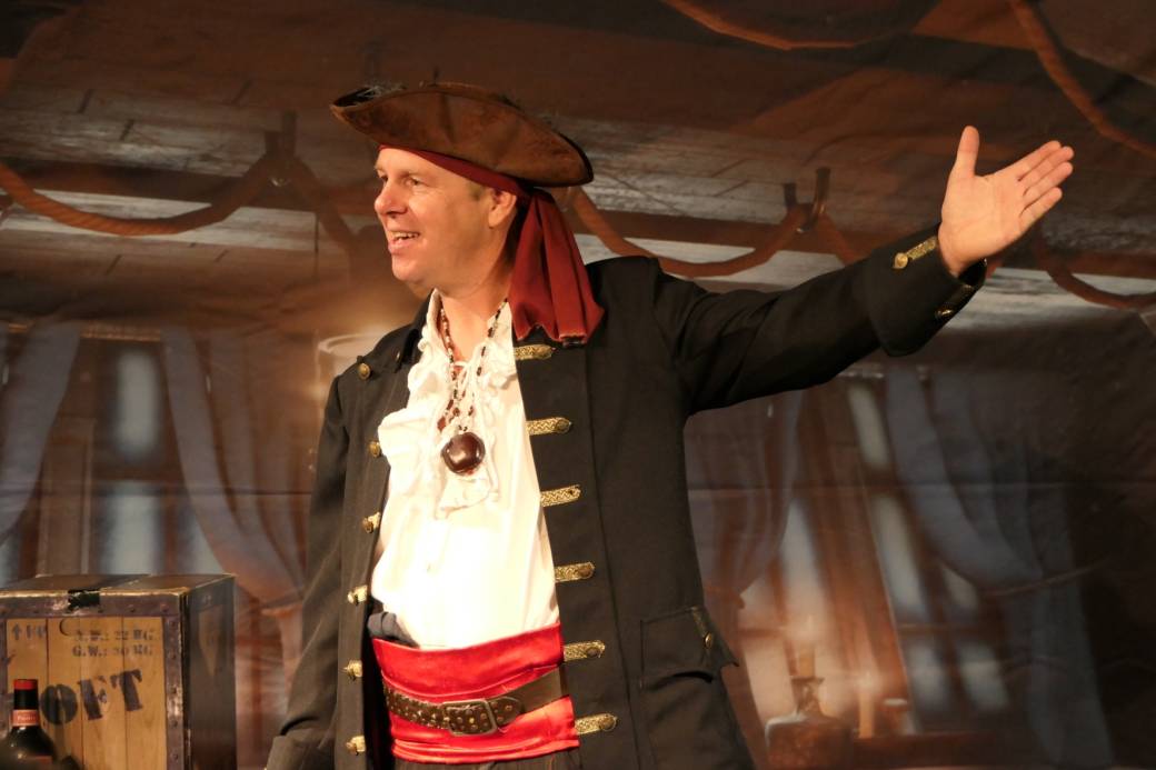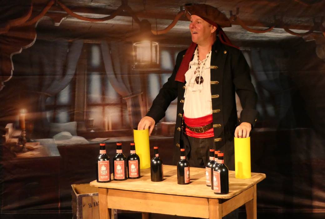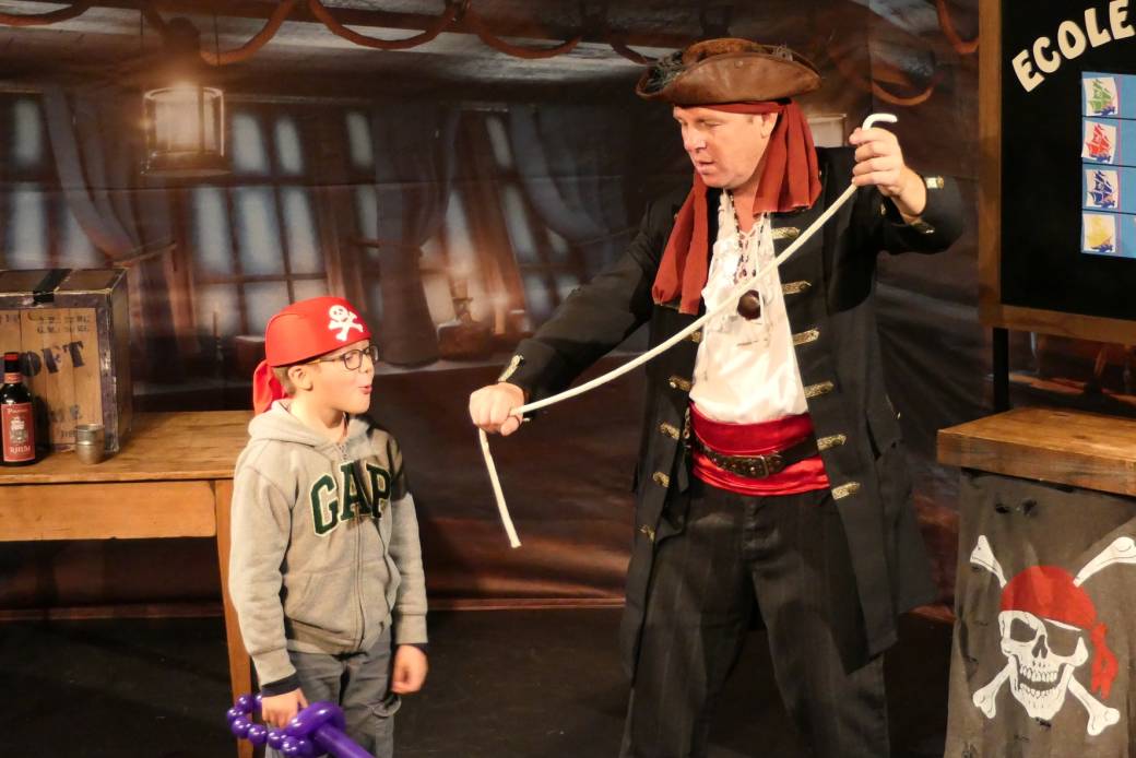 Il leur enseigne tout ce qui est bon à savoir en piraterie pour former nos petits pirates : épreuve de tir, épreuve de cordes, course de bateaux… Une aventure de pirates pour petits et grands, rythmée par de la magie, de l’interactivité avec le public et beaucoup d’humour… Alors toi aussi, deviens un pirate ! À l’abordage ! Hardi moussaillons !