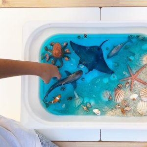 Des histoires et comptines, suivi de différentes jeux et bacs sensoriels sur les animaux marins, la plage pour découvrir l'été en s'amusant.