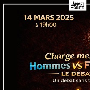 2026-03-14 19:00:002026-03-14 22:00:00Europe/ParisLA CHARGE MENTALE HOMME/FEMME - UN DÉBAT SANS TABOUReservations on : https://www.billetweb.fr/la-charge-mentale-homme-femme-un-d-bat-sans-tabou