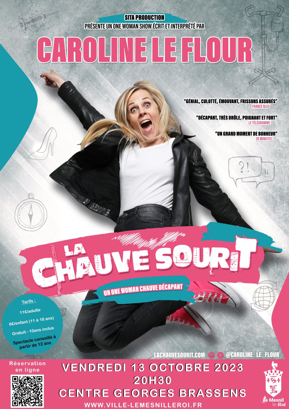2023-10-13 20:30:00 2023-10-13 22:30:00 Europe/Paris La chauve sourit Reservations on : https://www.ville-lemesnilleroi.fr/la-ville-et-vous/evenements/ -- Merci de prendre les places pour les enfants de moins 10 ans en tarif gratuit. Les billets sont non remboursable, ni échangeable !Spectacle conseillé à partir de 12 ans . Centre Georges Brassens, 100 Rue Jules Rein, Le Mesnil-le-Roi, France MAIRIE MESNIL LE ROI