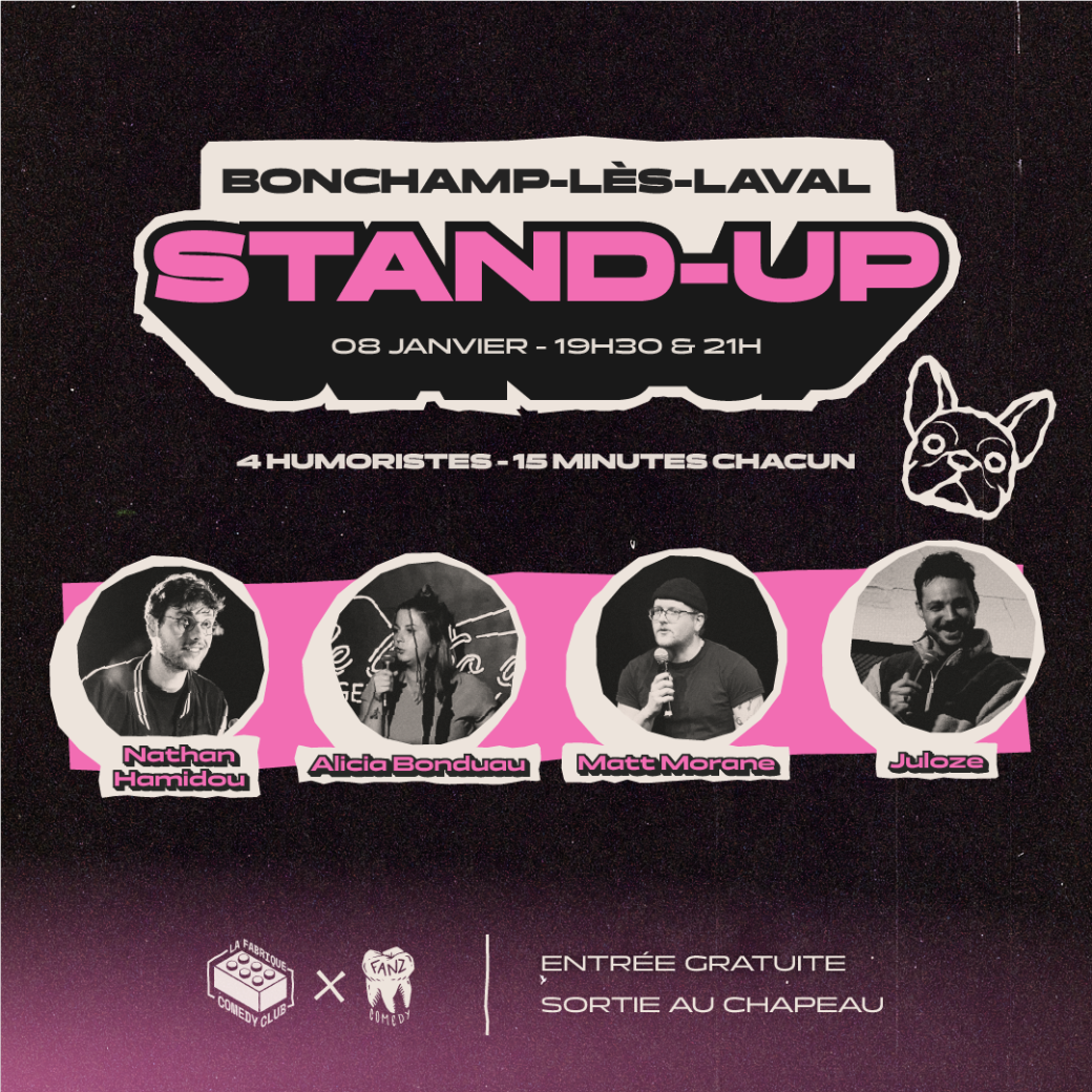 Tous les mois, retrouve le meilleur de l'humour dans LE PLUS GRAND COMEDY CLUB MAYENNAIS ! Au programme : 4 humoristes pour plus d'une heure de rires !