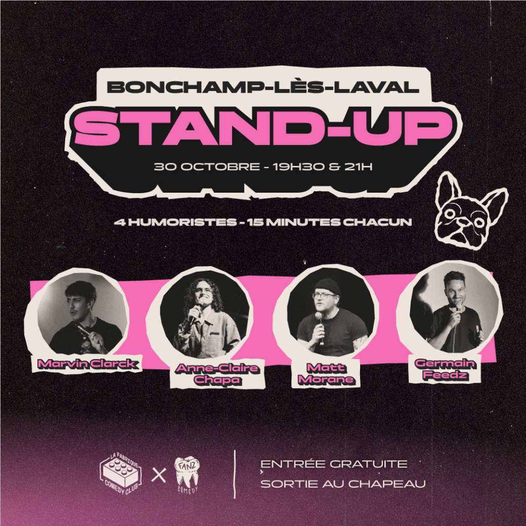 Tous les mois, retrouve le meilleur de l'humour dans LE PLUS GRAND COMEDY CLUB MAYENNAIS ! Au programme : 4 humoristes pour plus d'une heure de rires !