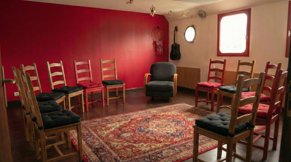 On se retrouvera à Conflans-Sainte-Honorine, dans un lieu calme et propice à l’intériorité : un bateau, garé et très stable (donc pas de problèmes pour ceux qui ont le mal de mer).