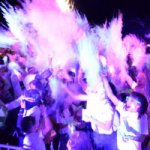 Lors de cette course de nuit, munis d'accessoires fluo, 4 zones musicales vous permettront d'être arrosés de poudre holi fluorescente sous la lumière noire !