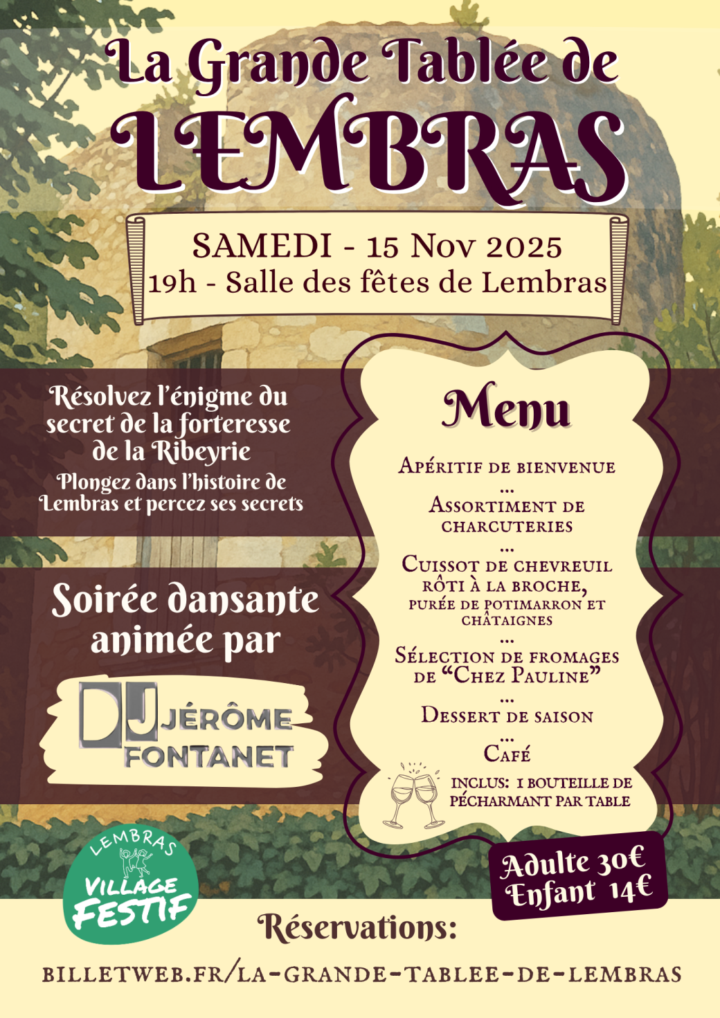 - Un jeu d’enquête à vivre entre deux bouchées: plongez dans les secrets historiques de Lembras à l'époque médievale et partez à la recherche de l’élixir de jouvence…
